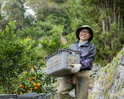 いつも笑顔の生産者、高岡勇治。今期は温州みかんの品質も良好でした。