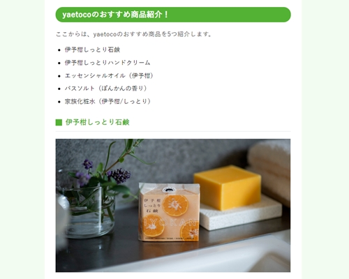 ブランドの成り立ちから、伊予柑しっとり石鹸をはじめとする様々な商品をご紹介いただいます。ぜひ、ご一読ください。