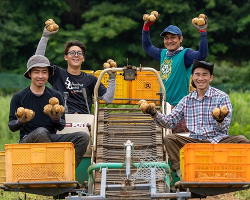 てんぽ印の役割は、後継者育成から集団での有機農業の実践へ、さらに農業と加工場の運用による安定雇用の創出へと時代や社会情勢によって変化しています。しかし根底にある、「田舎暮らし」に価値を見出した移住希望者の受け皿でありたいという思いと、人間の根源的な生業である農業を次世代につなげたいとの思いは変わりません。現在、てんぽ印には海外実習生5名を含む15名が在籍し、平均年齢は31 歳。2020年日本の基幹的農業従事者数の平均年齢は67.7 歳。この年齢差だけとってみても、てんぽ印の存在は希望の星です。