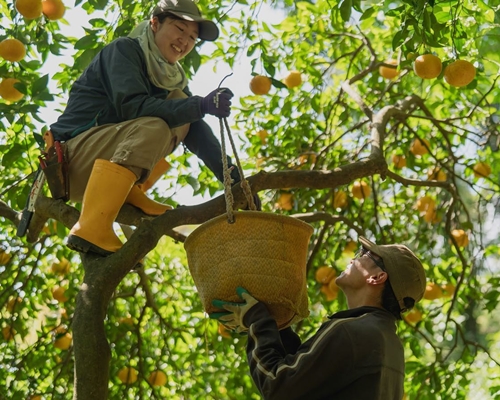 無茶々園では1997年、新規就農希望者の受け入れ拠点として研修センター(寮)を設立しました。「Iターンの受け入れ」「新規就農制度」など今では当たり前ですが当時は農業=継承産業という意識が強く、寮を構えてよそ者を受け入れる生産者団体は珍しく全国各地から様々な人材が集まりました。2年後にはてんぽ印の前身「ファーマーズユニオン天歩塾」を設立。大規模有機農業の実践を目指し、明浜から約80km離れた愛南町に甘夏畑を借り受けて出作りを開始。2002年以降は松山市北条で野菜・ゆず・伊予柑の栽培を手掛けるようになりました。