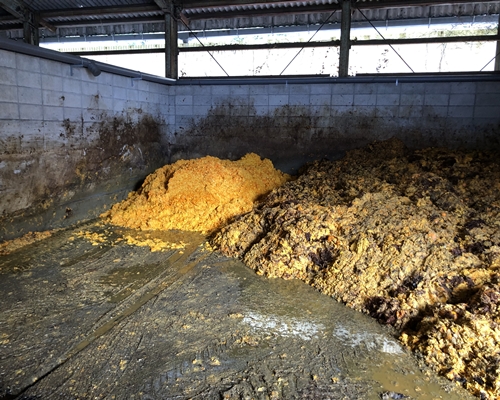 堆肥場の様子。みかんの搾汁残渣を堆肥化し、山に戻していきます。