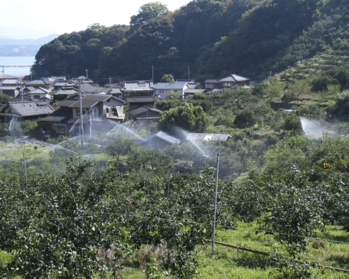 この渇水のなか、スプリンクラーの潅水設備が入っている畑では継続して潅水が行われてどうにかみかんの樹も樹勢が保たれていました。1967年に発生した大干ばつを受けて整備された南予用水の事業であり、愛媛のみかん作りを支える用水施設。整備が行われて30年以上が経ちましたが、秋にこれほど長いあいだ潅水が行われたことはありません。今年は水のありがたみを身に染みて感じる年になりました。