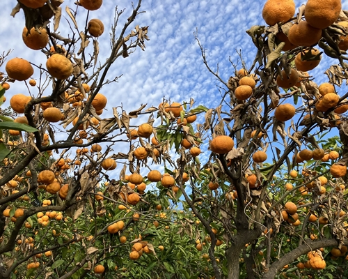 柑橘への影響は大きく、どの品種も肥大が進まずに小ぶり傾向となり、収穫量も当初の見込みよりは減ってしまいそうです。水分の吸収が少ないため果実の味はしっかりと凝縮して糖度が高くなりますが、同時に酸味も残りやすい仕上がりとなります。何よりも、干ばつで弱った樹が回復しきらなければ、翌年以降の収穫が低調になってしまいます。樹勢の回復にも気をつけながら、新しい春に向けて準備をしていく冬になりそうです。