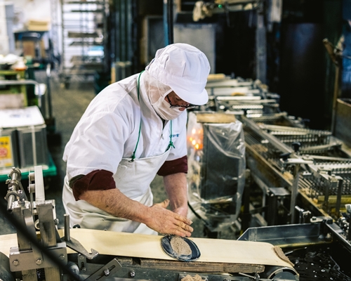無茶々園のじゃこ天は明浜町のお隣、宇和町にある伊予蒲鉾さんでつくられています。八幡浜で水揚げされた新鮮なほたるじゃこ・グチ・ワキヤハタ・ひいらぎ・コチ・トラハゼなどをまぜあわせて作られます。冷凍の魚肉を使わず、化学調味料や添加物を使用していないのが特徴です。手押しじゃこ天を作るのは社長の三好一巨さん。もともとご実家も蒲鉾屋で体の80%ほどは練り物でつくられていると話すほど練り物に囲まれて育ったそう。