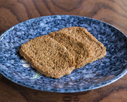 愛媛県南予地方の特産品「じゃこ天」。小魚を骨ごと、皮付きのまますり身にして油で揚げたもので一般的な「天ぷら」のように衣をつけて揚げるのではなく、小魚のすり身を平べったい小判型に成型しそのまま揚げます。ジャリジャリとした独特な舌触りが特徴で小魚のうま味が凝縮された豊かな風味と、カルシウム・DHA・ EPAが豊富です。