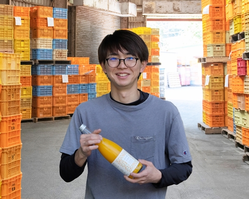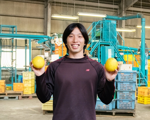 無茶々園に入社し早5年。少しずつ仕事を覚え、昨年から加工品の製造管理を担当しています。ジュースの製造計画を考えたりしていますが、まだまだ慣れていないためにまわりに迷惑をかけることも多いですが、やりがいを感じております。休みの日は無茶々園の生産者のところに手伝いに行きながら農業の勉強をしています。将来は無茶々園で働きながら実家の園地でみかんを作れたらいいなと思っております。