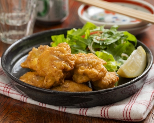 塩レモンの風味が効いた唐揚げになります。ご飯のおかずとしてよりも、酒のおとも向きです。