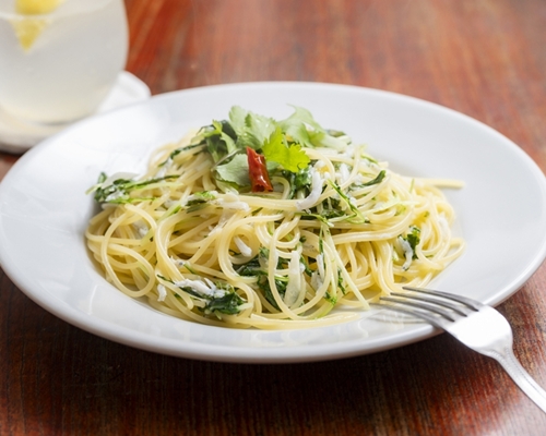 塩分が足りなかったら、塩レモンをさらに足してください。レモンが香る、爽やかなパスタになります。パクチーはなくても大丈夫。カラスミをかけても美味しい。ちりめんや鷹の爪はぜひ無茶々園のものを使いましょう(笑)。