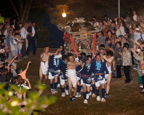 お祭りの日はは町の人口が一年で一番多い日です。日本各地遠くに越していても神輿を担ぎにもどってくる人が多いです。