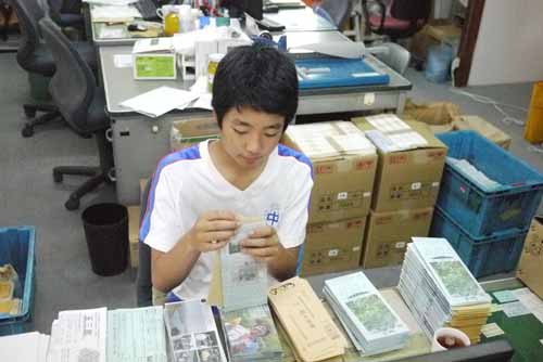 事務所内には、天歩や封筒などが所狭しと並んでいます。
