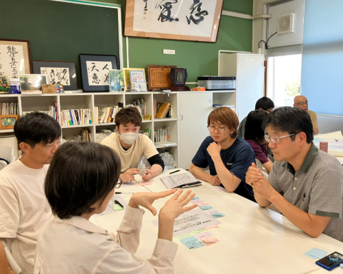 ビジョンについて話し合いの様子。農家、職員の無茶々園全員で議論をしています。