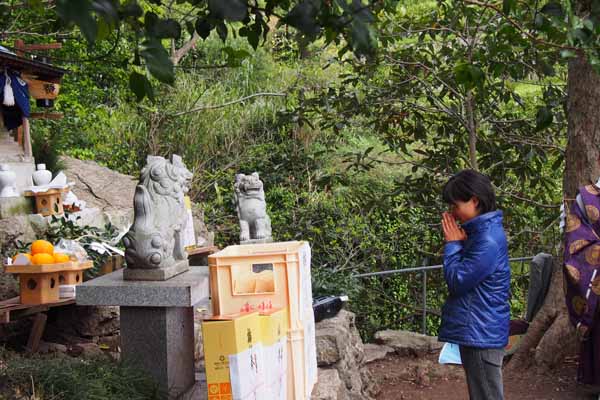 客人神社は狩浜の段々畑のなか、木立に囲まれた一角にあります。