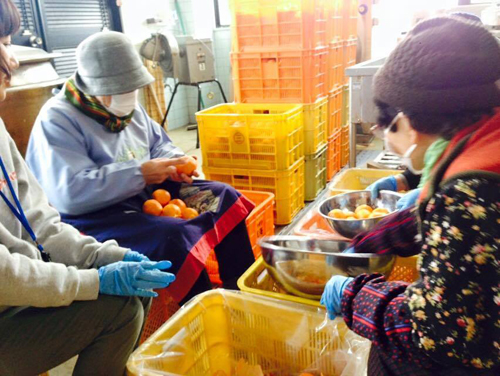 現在、原料となるぽんかんの皮むきを地元の婆ちゃんたちに頑張ってもらっていますが、