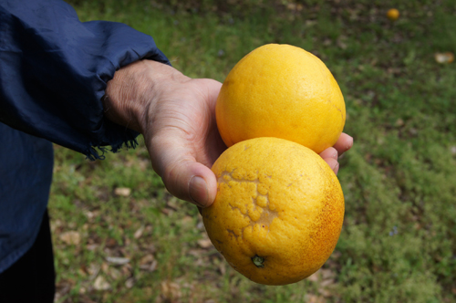 見た目は今ひとつかもしれませんが、味の良い柑橘になるように一生懸命手をいれておりますので、