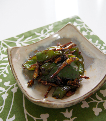4.ピーマンを別の鍋でいためて、佃煮を入れ絡めてできあがり。