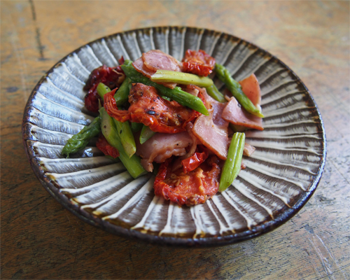 ドライトマトとアスパラベーコン炒め