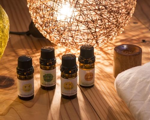yaetocoのエッセンシャルオイルは伊予柑・甘夏・ゆず・青みかんの全部で4種類。柑橘オイルの主成分であるリモネンには、気持ちを落ち着かせたり元気を出したり、心のバランスをとる働きがあるといわれています。