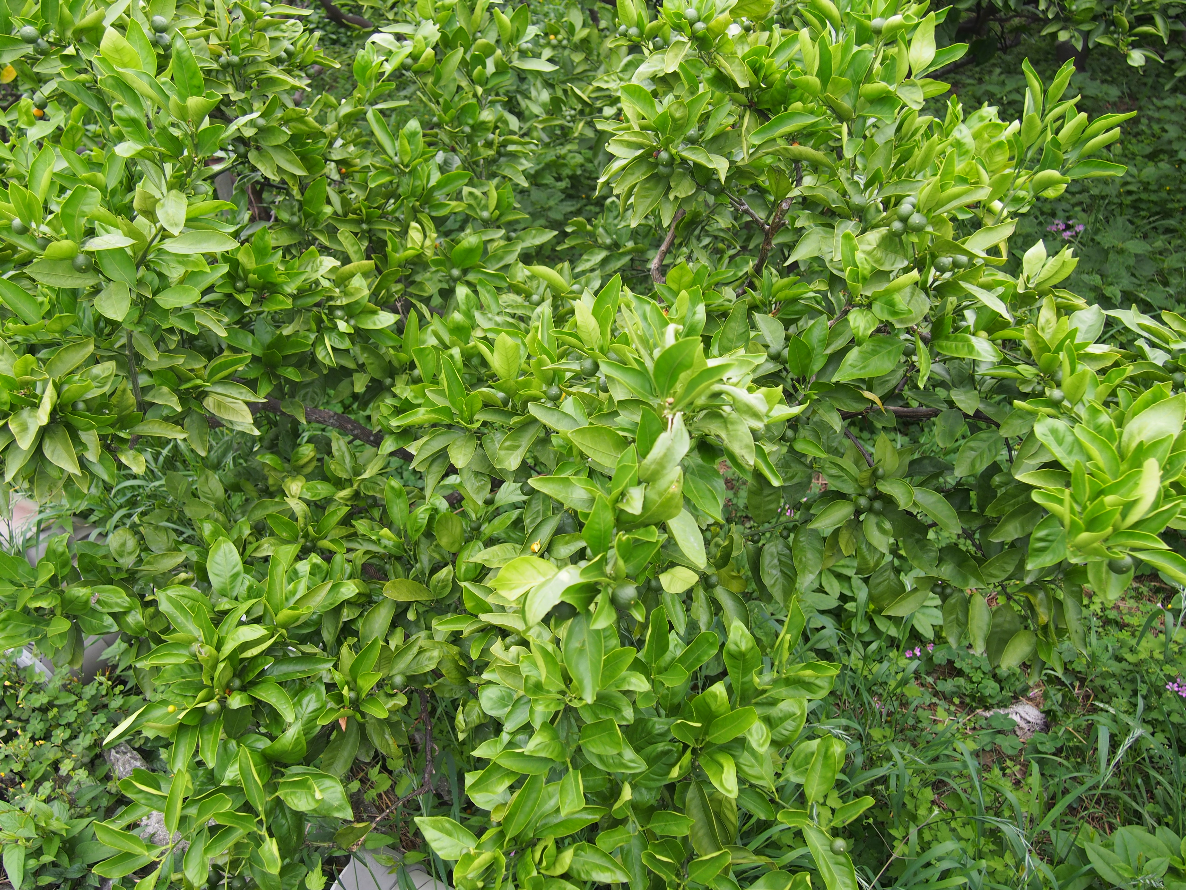 成りすぎず少なすぎず、春の新芽と果実がバランスよく成っている樹。