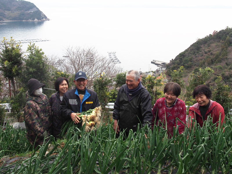 海を臨む玉ねぎ畑