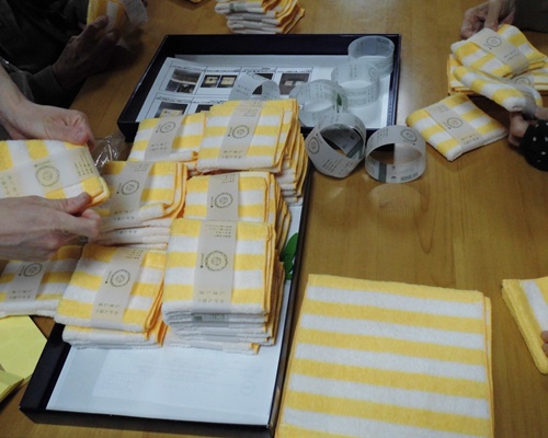 こうしたハンドタオルの袋詰め作業が、
