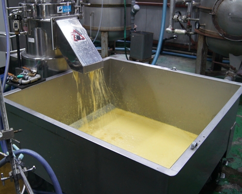 最後に窯のタンクから蒸留水を抜き、エッセンシャルオイルを取り出して再度精製します。これでエッセンシャルオイルの完成です!