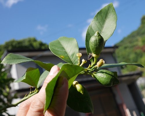 7月から進むのが「二次落下」。今度は残った果実同士や新根との養分の取り合いで、ここでも果実が自然に脱落していきます。こうして梅雨明けごろには果実の数が定まり、今年は豊作、今年は不作、とより明確になっていきます。現状では、今年の温州みかんの果実は去年よりも数がやや少ないように見えます。ただし、昨年はやや不作であった伊予柑やポンカンはまずまず着果しているようです。