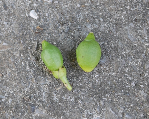 花が咲いた後にやってくるのは「生理落下」です。花びらが落ちると緑の子房が顔を出します。この小さな果実がぽろぽろと自然に落ちていくのが生理落下。みかんの樹が養分をどこに振り分けるのかがポイントになり、5月から6月にかけて新芽と果実とで養分を競い合って果実が落ちるのが「一次落下」です。ちなみに新芽が自然に落ちることはありませんので、発芽が多いほど果実が落ちやすくなります。