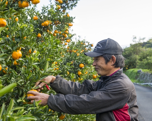 そして台風の接近などによる極端な気象現象が作柄を大きく変えてしまうことも増えてきました。一昨年には10月末になって大型台風が近づき、大雨と暴風でみかんの収量が大きく落ち込んだのも記憶に新しいところ。かといって毎年雨が多いわけではなく、逆に干ばつとなる年もあり、気候の見極めが難しくなっています。スマートフォンに長期予報や台風予想のアプリを入れてチェックするのがすっかり生産者の日課になりました。