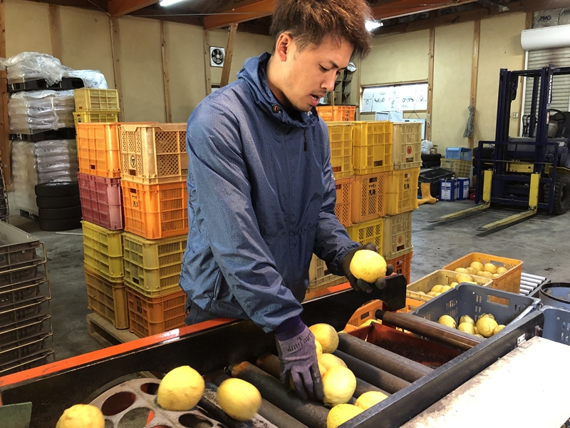 弓削瓢柑の選果中