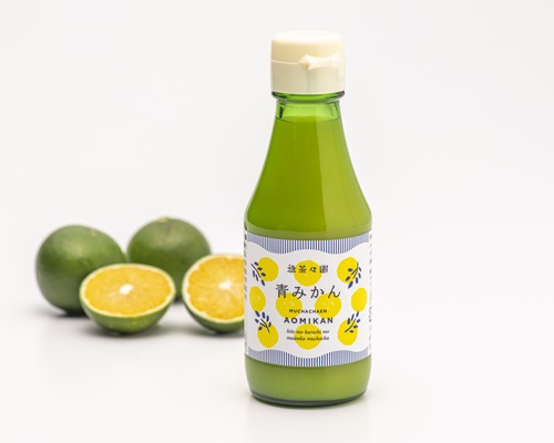 この摘果みかん、無茶々園ではいろいろな形で出荷や加工を行っております。おなじみなのは以前「みかん酢」と呼んでいた「青みかん果汁」。8月下旬の温州みかんの摘果した果実を搾汁し、そのまま瓶詰めした商品です。温州みかんらしい香りと風味が出てくるものの、まだまだ酸味が残っており、レモンやゆずのように使えないかと商品化したものでした。皆さんに直接お届けしているのはこの「青みかん果汁」だけですが、これ以外にも摘果みかんを集め、主に加工用に出荷する取り組みを行っています。