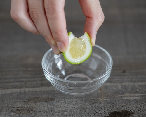 上の画像のように果実をXのかたちにカットすると、果肉の断面がしっかり現われ果汁を効率よく搾ることができます。そして、搾るときは皮を下にむけて。こうすることで果皮に含まれている成分や香りを果汁と一緒に楽しむことができます。