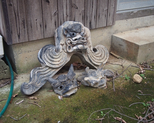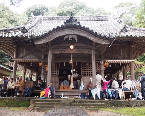 ところで2019年に「宇和海狩浜の段畑と農漁村の景観」として段々畑を中心とした狩浜一帯が文化庁の定める文化的景観に選定されました。春日神社も歴史・文化的価値からその重要な一要素と定められ、今回は新築の計画を変更し、できるだけ現状を残すよう拝殿と中殿のみの改修となりました。現在、拝殿・中殿が取り壊されて土台と柱のみが建ち、子どもたちが遊んでいたお宮の前の広場には足場が組まれています。うっそうとした樹々に囲まれた静謐な参道には再活用する木材を保管するための大きな仮置き場が設置されており、私たちが慣れ親しんだ春日神社を思い描くことはできません。また、予想以上に白アリ被害がひろがり、その分の木材供給が間に合わず完成時期とされていた3月から数か月遅れる見通しですが、このような状況も含め「令和の大修復」として語り継がれることになるのでしょう。