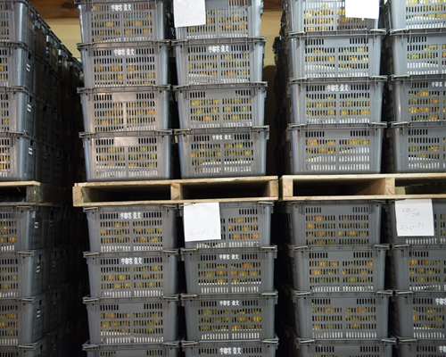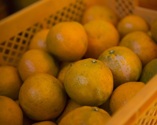 倉庫で貯蔵中の柑橘。