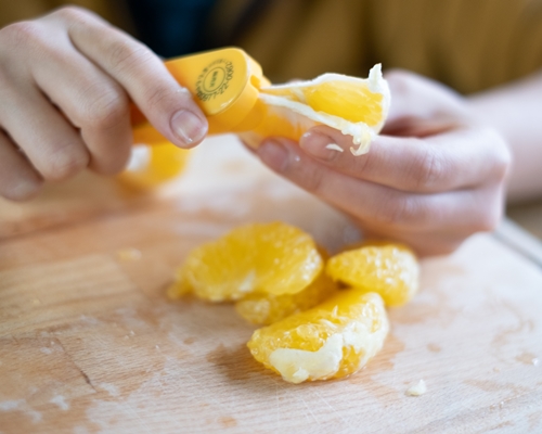 皮が厚いので包丁で切り込みを入れてから外皮をむき、じょうのう(内皮)もむいてから食べましょう。皮むき器の「ムッキーちゃん」を使うと簡単に食べることができますよ。使い方を紹介していますので、下記動画もぜひ見てみてくださいね。