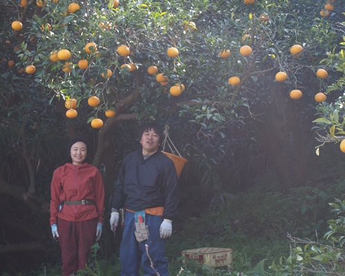 5月の収穫の追い込みの時期には、明浜町から助っ人も参加してひたすら収穫。今では途中まで高速道路が延伸し1時間半ほどで着くようになりましたが、ちょっとした遠足気分です。てんぽ印代表の村上曰く、「甘夏はおおらかな柑橘」だそうです。おおらかな甘夏を人間が世話しているのか、それともおおらかな甘夏が我々を見守ってくれているのか。次々と新品種が登場する昨今ですが、少々の皮のむきにくさには目をつぶり、(便利な皮むき器もありますよ)おおらかな気持ちで古参品種の甘夏を楽しみたいものです。