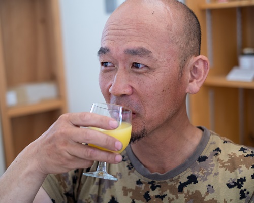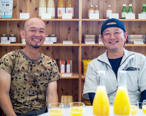 無茶々園で河内晩柑に取り組んでいる農家・宇都宮幸博と中川真のふたりにも、このジュースを飲んでみてもらいました。ともに河内晩柑の味には一過言ある生産者。さてはて、その感想やいかに。