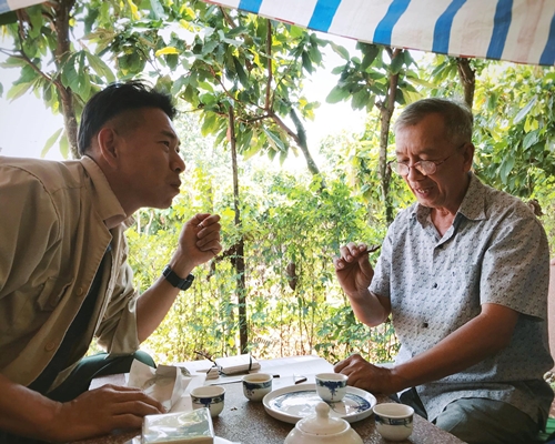 長年カカオに情熱を注いできたタムさん(右)と髙埜。