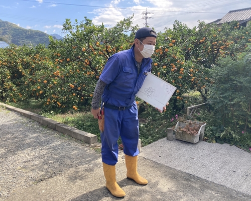 無茶々園の生産者宇都宮幸博は、毎年地元の小学校である明浜小学校でみかんの授業を実施しており、今年で7年目になります。これまではみかんの花の様子(5月)、みかんにまつわる病害虫のお話(7月)、収穫体験(11月)といった内容で計3回実施していましたが、現在はコロナ渦中ということで11月の収穫体験のみにとどめています。
