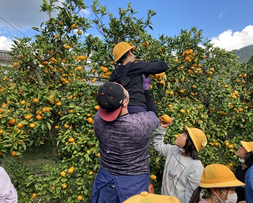 今回は四国エコネットの生産者として、無茶々園の取り組みに関わってくれている天晴農園のみなさんも参加。樹上の果実を獲りたい子を持ち上げたり、一緒に授業を楽しみました。来年も同じようにみかん授業を実施していきたいと話す宇都宮幸博。明浜で育つ子どもたちに、その魅力をしっかり味わってもらえたのではないでしょうか。
