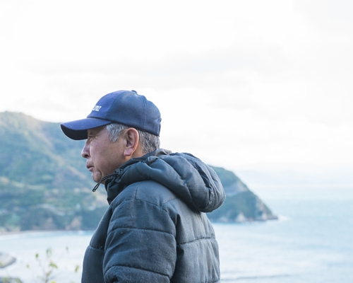 無茶々園の活動の中心となっている明浜町は東西に長く、東から俵津、渡江、狩浜、高山、宮之浦、田之浜の6つの集落があります。その中でも西端に位置する田之浜地区の畑をてんぽ印が借り受けることになりました。田之浜でも「山の奥の山の上にある」この畑は40年ほど前、生産者・中山源綱さんが開墾しました。昔はサツマイモを育てていましたが当時は荒れており、草木を刈り取り苗木を植え、潅水設備に至るまで自分で整備したという、まさに中山さんが一から育て上げた畑です。