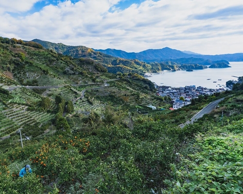 大きいザックを背負って愛媛に初上陸し、野福トンネルを抜けた先に広がる段畑と海の絶景に目を奪われてから約10日間、毎日が濃く、本当にあっという間でした。ホームページやパンフレットなどで明浜の光景は何度か目にしていましたが、いざ実際目にした時の感動は衝撃的でした。湖のように穏やかなキラキラした海と、山の下から上まで続く段畑にオレンジに色づき始めているみかんの樹。その壮大な光景は、どこかの国の遺跡のようで、日本にもこんなところがあるのかと目に焼き付いています。