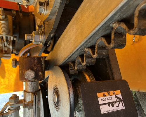 モノラックは単軌道のレール上を動力車と荷台が進んでいく仕組みです。都市交通のモノレールとは違い、山岳鉄道のようにレールに歯形や穴を設け、車両の歯車をかみ合わせて勾配に耐えながら進んでいきます。動力車はガソリン(混合油)を燃料にする原動機付の車両で、果樹栽培用のモノラックは約200kgの荷物を引っ張っていくことができます。メーカーはいくつかあって明浜では主に3社の製品が使われています。ちなみに“モノラック”は主要メーカーであるニッカリの製品名。一般名称はモノレールなのですが、明浜ではこの“モノラック”が定着し、さらに省略して“ラック”と呼ぶこともあります。